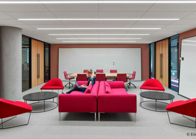 Le siège social de Dropbox est équipé de technologies avancées pour soutenir le travail à distance et la collaboration en temps réel. Chaque salle de réunion est équipée de systèmes audio-vidéo de haute qualité pour faciliter les interactions entre équipes dispersées. Les espaces de travail sont flexibles, permettant aux employés de choisir le lieu le plus adapté à leurs tâches du jour, que ce soit pour un travail en équipe ou des projets individuels.
