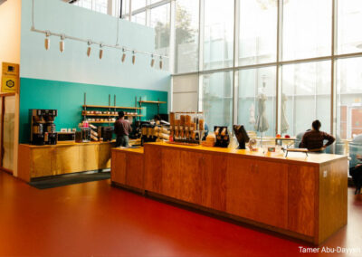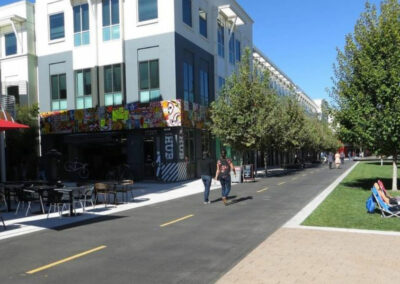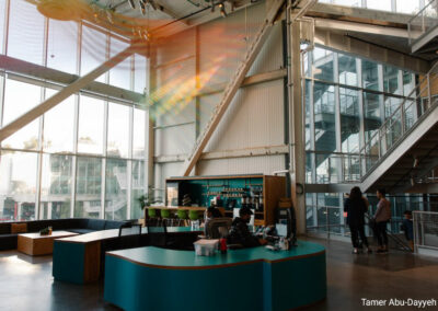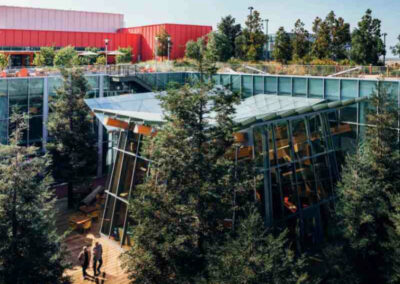 Une des caractéristiques les plus impressionnantes du siège social de Facebook est son toit vert de 3,6 hectares. Ce véritable parc, situé sur le toit du bâtiment, est composé de sentiers de promenade, d’espaces verts et de plus de 400 arbres. Ce toit écologique crée une atmosphère sereine pour les employés, favorise la détente et contribue à la durabilité du bâtiment en optimisant l’isolation thermique.