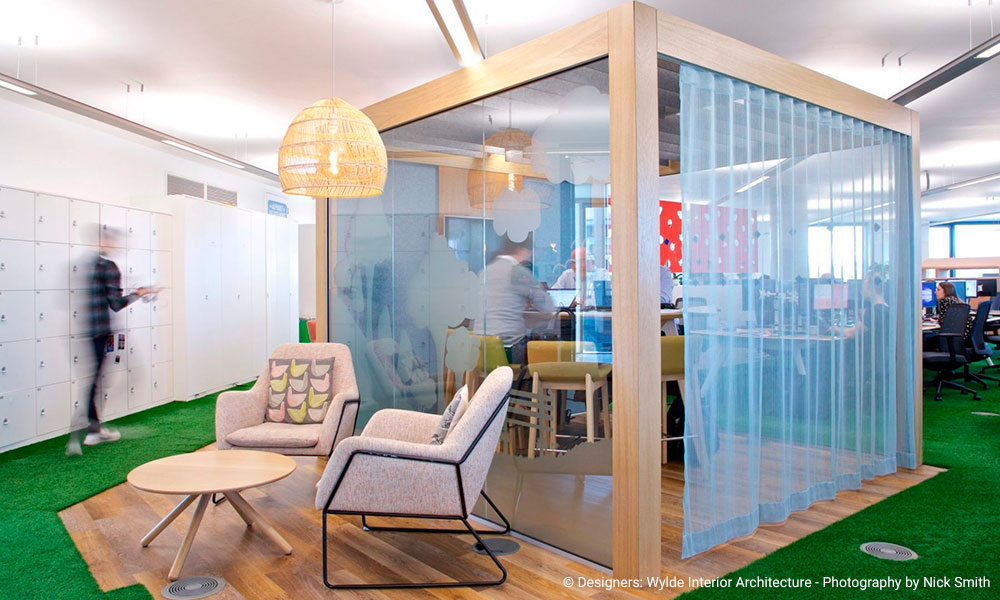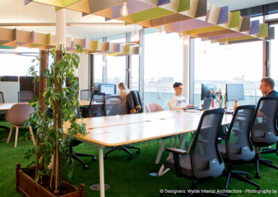 Innocent Drinks met un point d’honneur à veiller au bien-être de ses employés. Le siège social offre des espaces de travail flexibles, où chacun peut choisir l’endroit qui convient le mieux à ses besoins, qu’il s’agisse d’une salle de réunion, d’un coin café ou d’un espace extérieur. Les employés peuvent également profiter de cours de yoga, d’une cantine biologique et de nombreux événements pour encourager la cohésion d’équipe et l’équilibre entre travail et vie personnelle.