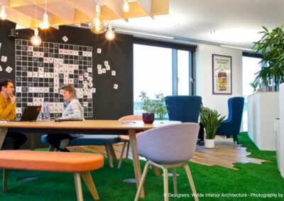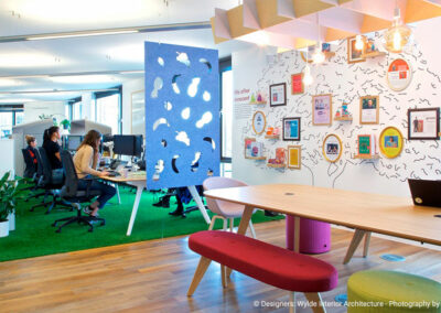 Le siège d’Innocent Drinks montre qu’une culture d’entreprise ludique peut être intégrée à la conception des bureaux. Les entreprises peuvent adopter un design plus créatif et accueillant en utilisant des couleurs vives, des espaces de détente, et des zones collaboratives. Cela favorise un environnement de travail plus détendu, où les employés se sentent à l’aise d’exprimer leurs idées.