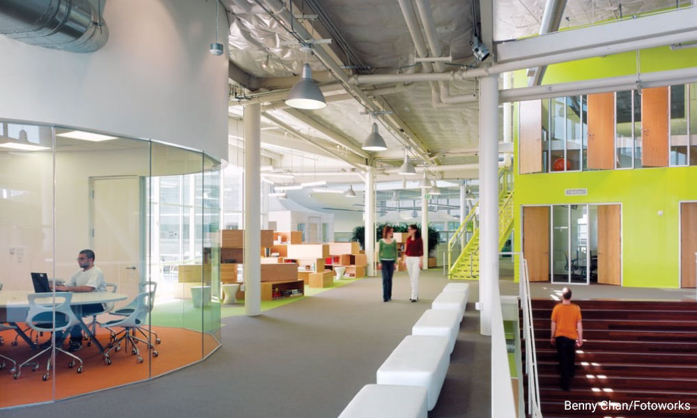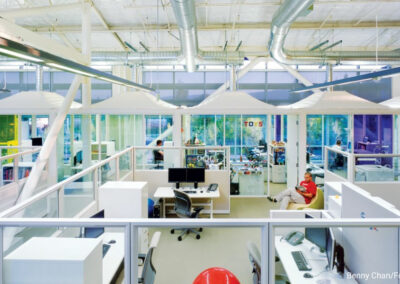 Conception axée sur l’innovation : des espaces ouverts et créatifs qui stimulent la collaboration.