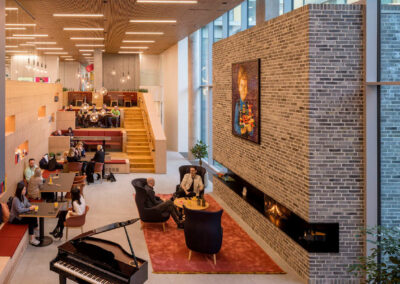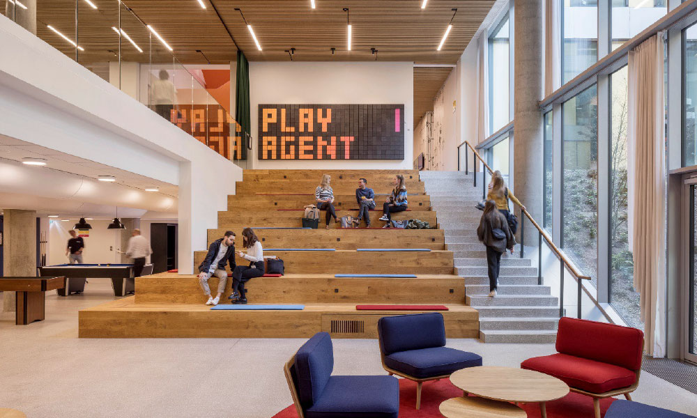 Le siège social de LEGO se distingue par son design ludique inspiré des célèbres briques LEGO. L’intérieur est rempli d’éléments colorés, de structures modulaires, et d’espaces interactifs qui stimulent la créativité. Les employés évoluent dans un environnement où l’innovation est encouragée à travers l’aménagement même des lieux, avec des espaces flexibles qui favorisent le travail collaboratif.